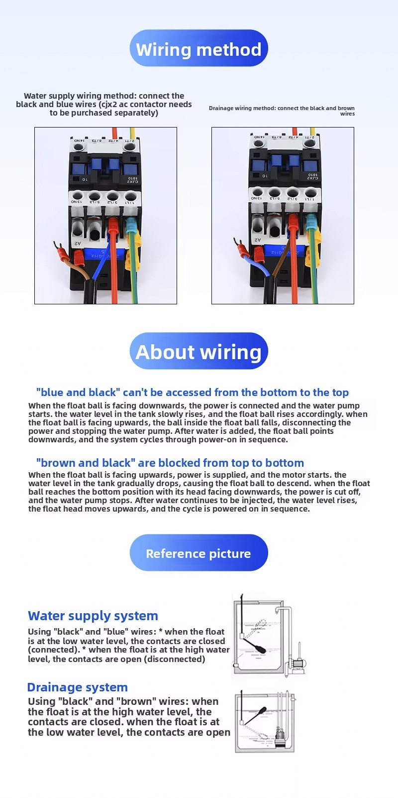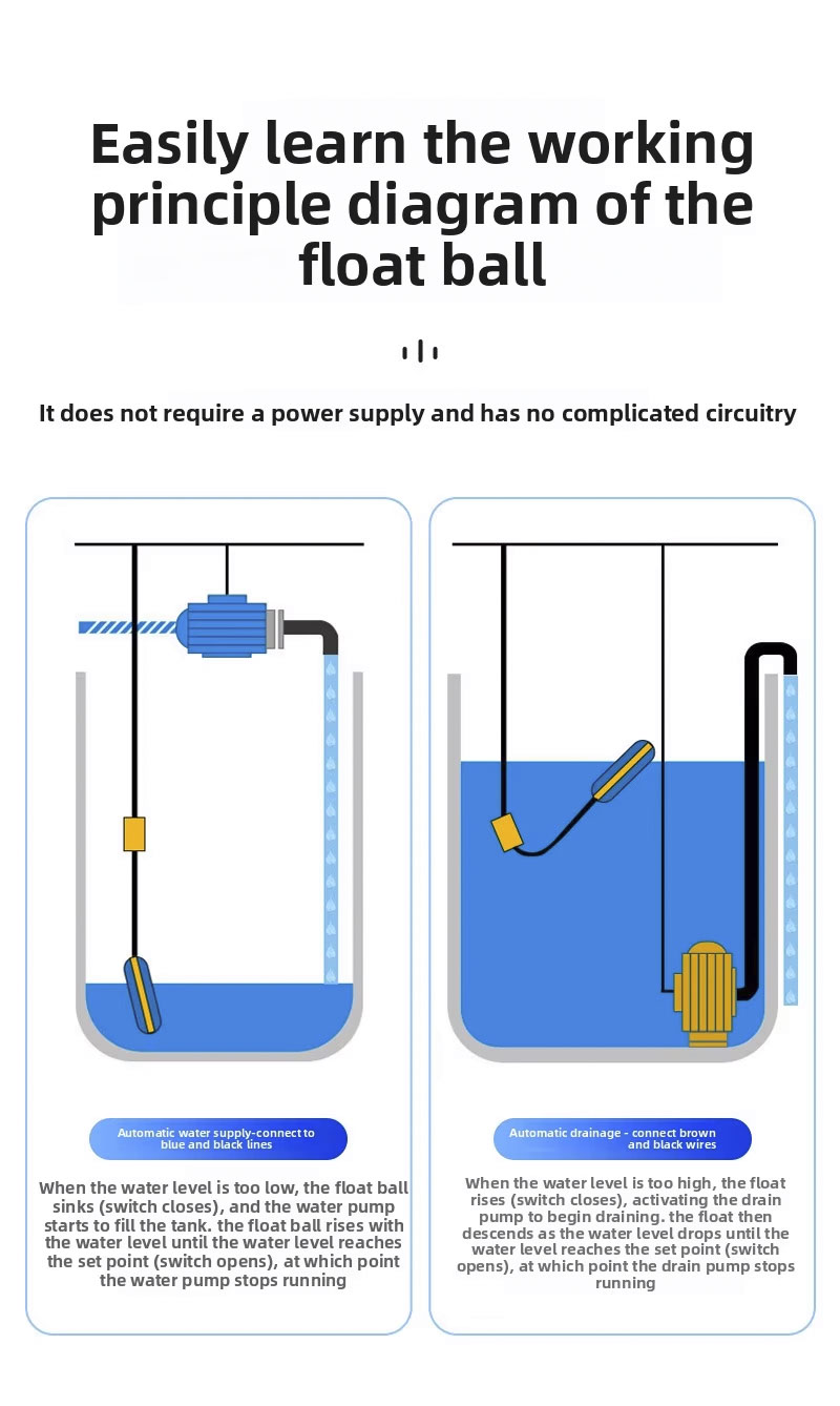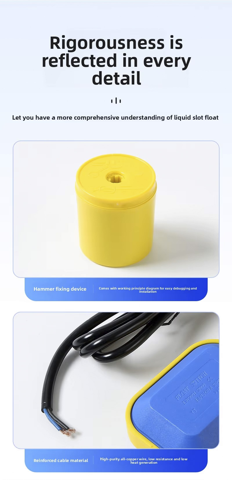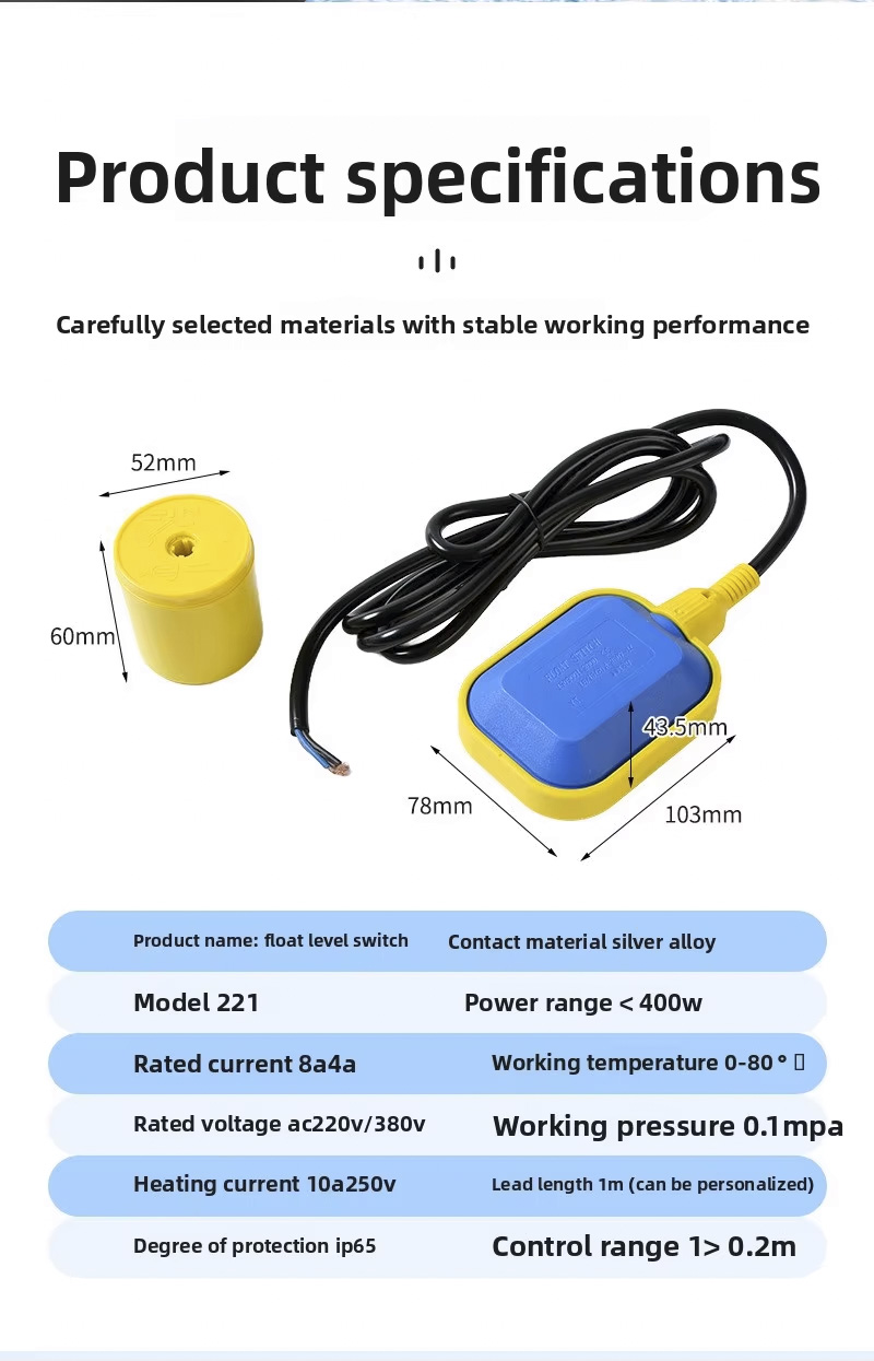 Ten przełącznik pływakowy ma dużą okrągłą konstrukcję o stopniu ochrony 2 m, 3 m, 5 m, 10 m, IP68 i działa w temperaturach od 0 ℃ do 80 ℃. Obsługuje szeroki zakres napięć od 110 V do 220 V i ma solidne ciśnienie robocze ± 0,5 MPa. Produkt można dostosować za pomocą grawerowania laserowego, wytłoczonego logo lub OEM/ODM usług, zapewniając możliwość dostosowania do różnorodnych zastosowań.