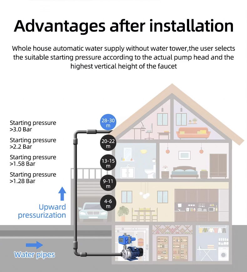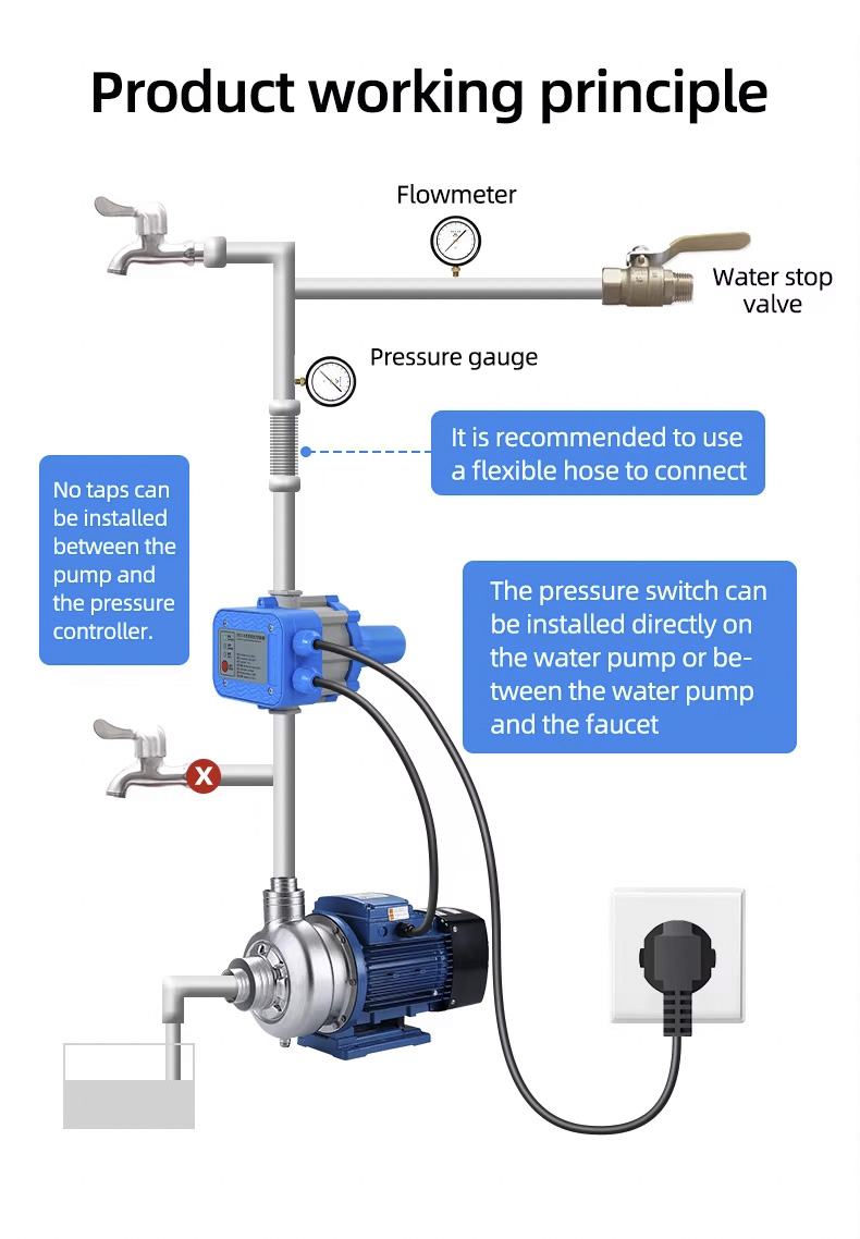 Automatyczny sterownik pompy Elektroniczny regulator ciśnienia pompy wodnej może zastąpić skomplikowane instalacje automatycznej pompy wodnej. Charakteryzuje się stabilną wydajnością, niskimi kosztami konserwacji i długą żywotnością.