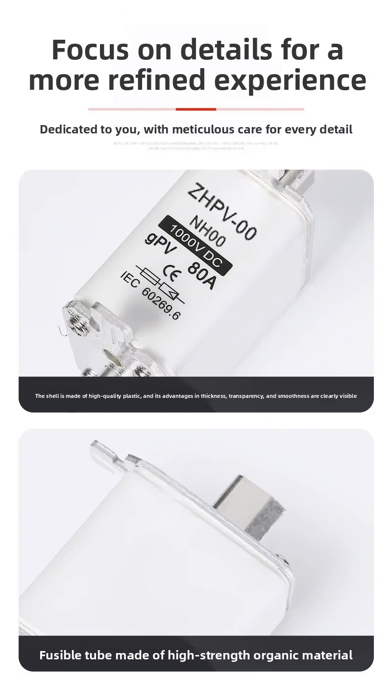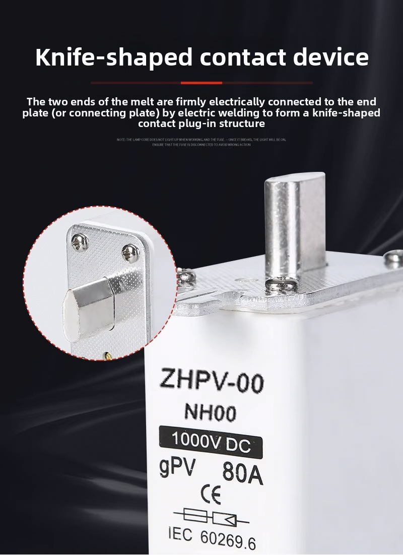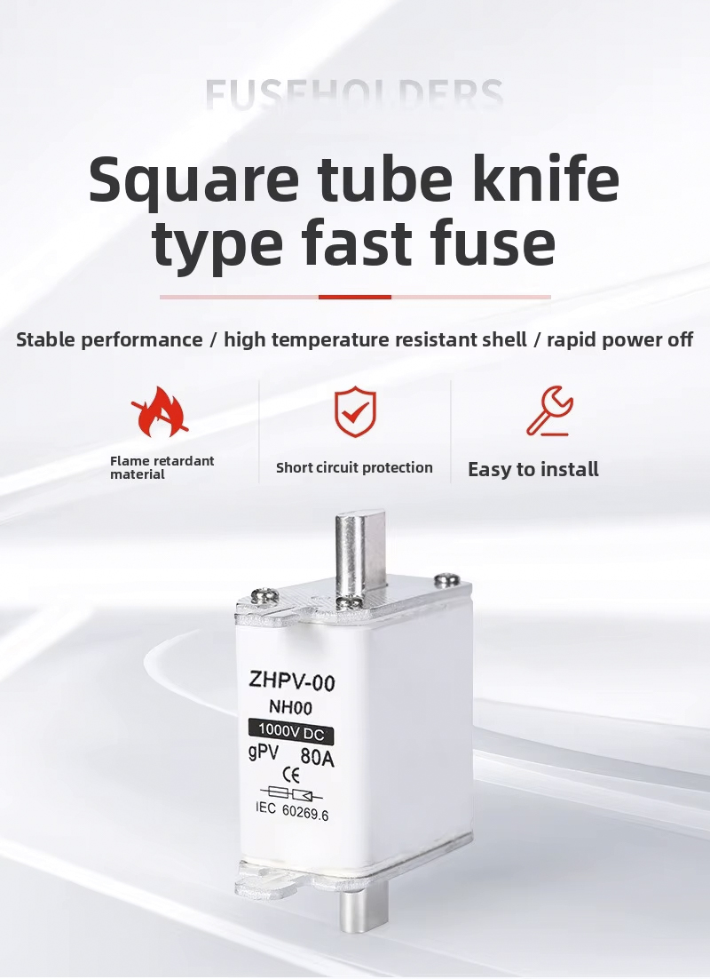 Niskonapięciowy fotowoltaiczny bezpiecznik nożowy NH00-1000V IEC z tworzywa sztucznego 80A 6ka. Zdolność wyłączania został zaprojektowany z myślą o wydajnej i niezawodnej ochronie obwodów w systemach fotowoltaicznych i innych zastosowaniach niskiego napięcia. Ten wysokiej jakości bezpiecznik działa do 1000 V, z solidną zdolnością wyłączania 6 k, zapewniając bezpieczne odłączenie w przypadku przeciążeń lub zwarć. Prąd znamionowy 80A sprawia, że nadaje się do różnych instalacji fotowoltaicznych i przemysłowych paneli sterowania.