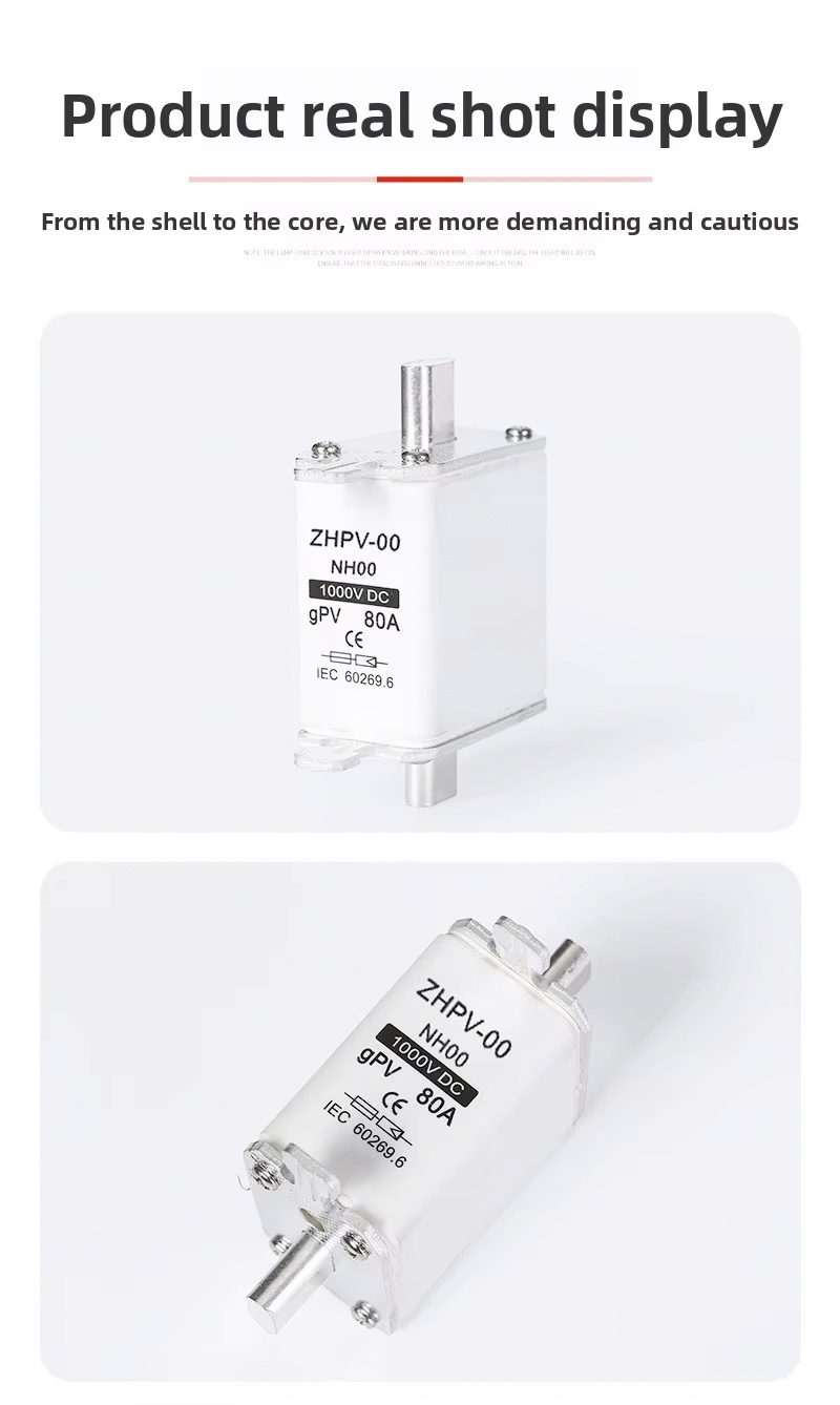 Wykonany z wytrzymałego tworzywa sztucznego, fotowoltaiczny bezpiecznik nożowy niskonapięciowy NH00-1000V IEC z tworzywa sztucznego 80A 6ka zapewnia doskonałą izolację i odporność na ciepło, zapewniając stabilną pracę w wymagających warunkach. Zgodny z normami IEC, bezpiecznik ten gwarantuje bezpieczeństwo i spełnia wymagania nowoczesnych projektów energii odnawialnej. Konstrukcja nożowa umożliwia łatwą instalację i wymianę, skracając czas konserwacji i zapewniając ciągłą pracę systemu. Wybierz niskonapięciowy fotowoltaiczny bezpiecznik nożowy NH00-1000V IEC z tworzywa sztucznego 80A 6ka o zdolności wyłączania do zastosowań fotowoltaicznych lub przemysłowych, aby skorzystać z wyjątkowej ochrony, trwałości i zgodności z międzynarodowymi normami bezpieczeństwa.