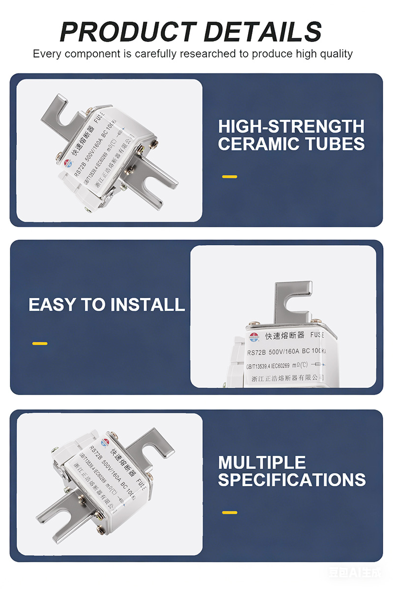 Produkt ten nadaje się do zastosowań takich jak systemy zasilania, szafy rozdzielcze, transformatory itp., zapewniając bezpieczną pracę obwodów. Wkładki bezpiecznikowe RS72B 500 V 160 A BC 100KA charakteryzują się szybką reakcją i mogą szybko odciąć prąd w przypadku awarii, chroniąc sprzęt znajdujący się za nim. Napięcie znamionowe wynosi 500 V, a prąd znamionowy 160 A, co spełnia międzynarodowe standardy. Łatwy w instalacji i konserwacji, odpowiedni do różnych zastosowań przemysłowych. Wkładki bezpiecznikowe RS72B 500V 160A BC 100KA zyskały uznanie wielu użytkowników dzięki swojej stabilnej i niezawodnej pracy, co czyni je idealnym wyborem dla zapewnienia bezpieczeństwa systemów elektroenergetycznych.