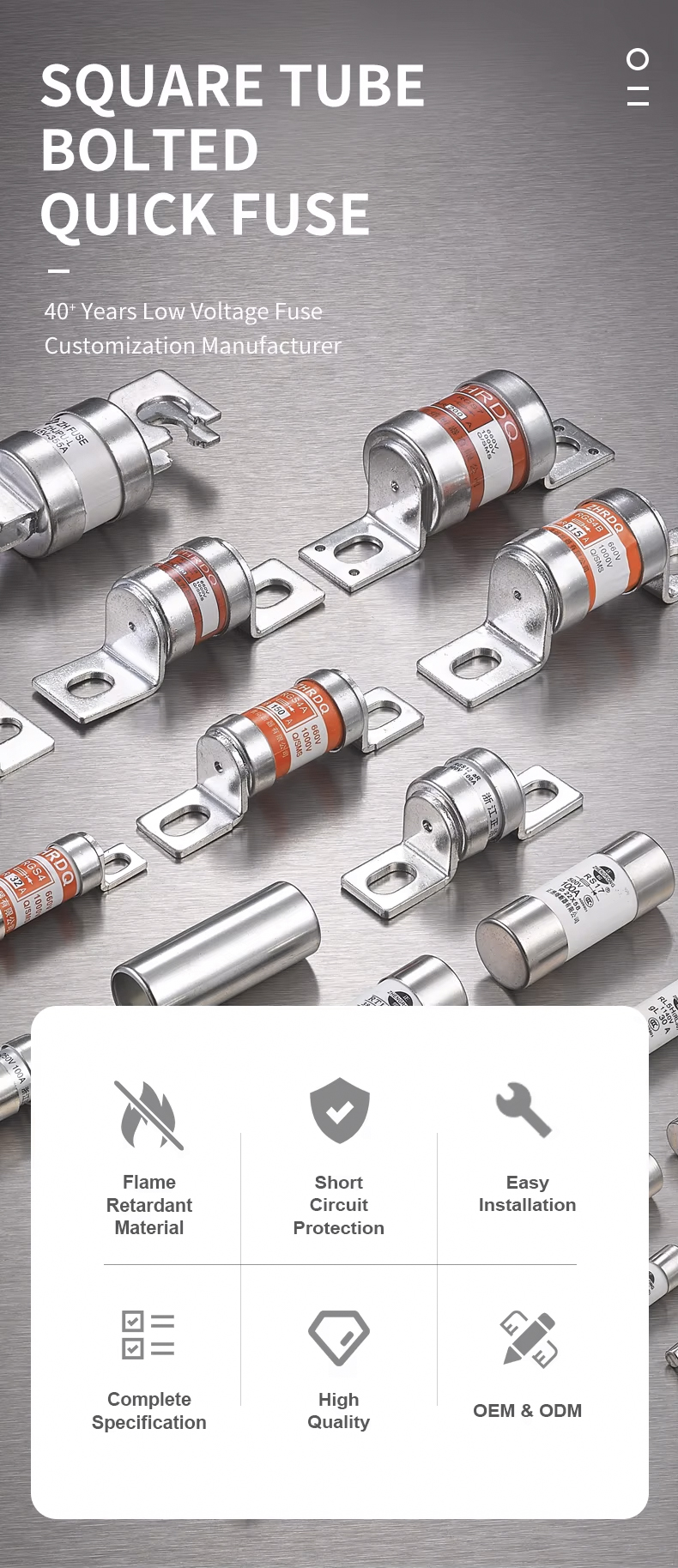 Bezpiecznik RS0/RS3-50 500 V to szybki bezpiecznik z kwadratową rurką, przykręcany śrubami, o napięciu znamionowym 500 V i zdolności wyłączania 50 K, który zapewnia dobrą gwarancję bezpieczeństwa. Może być stosowany w dowolnym transformatorze i falowniku.